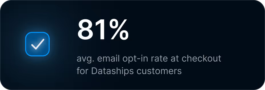 We moved from a basic Shopify opt-in at checkout to Dataships and it took our opt-in rate to nearly 100%. Now we can capture and retarget customers very compliantly. List growth is great, but it's not great if you get sued or land in spam; this gives us confidence to scale while following best practices."