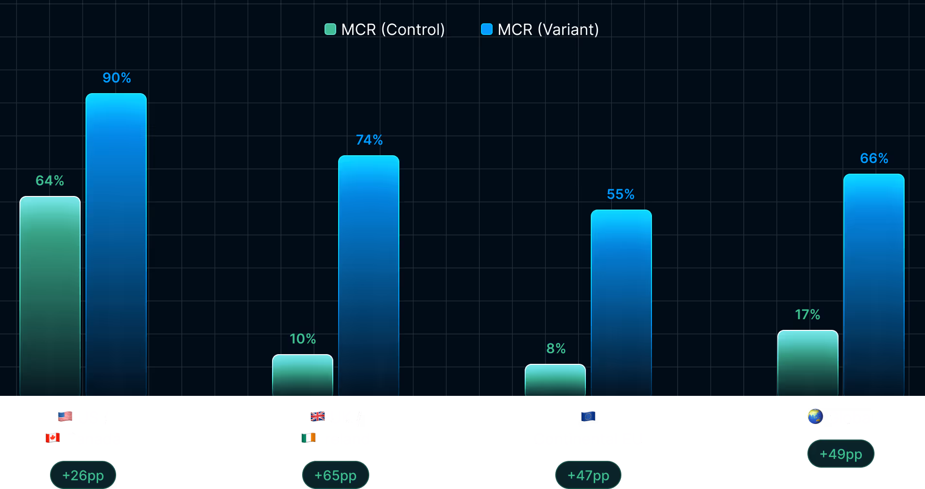 Our analysis finds that regional privacy laws, the way they are interpreted, and the way consent is collected against those interpretations is the primary driver of checkout opt-in performance across global markets. When brands break from the status quo and optimize consent collection within compliance frameworks, they consistently outperform those using generic approaches, achieving dramatic improvements in both subscriber acquisition and customer lifetime value.